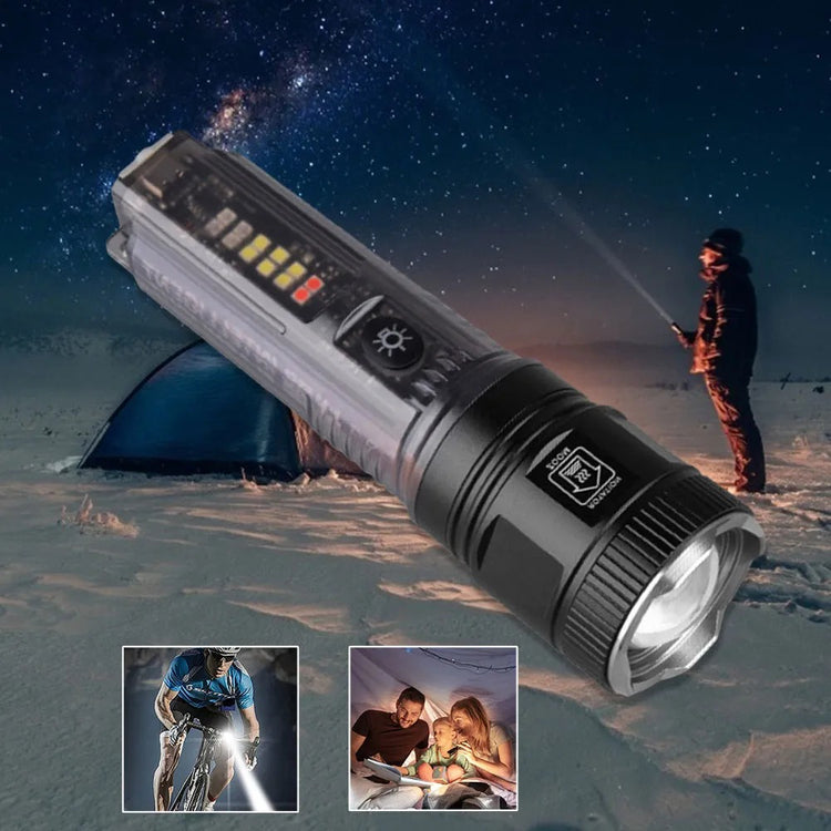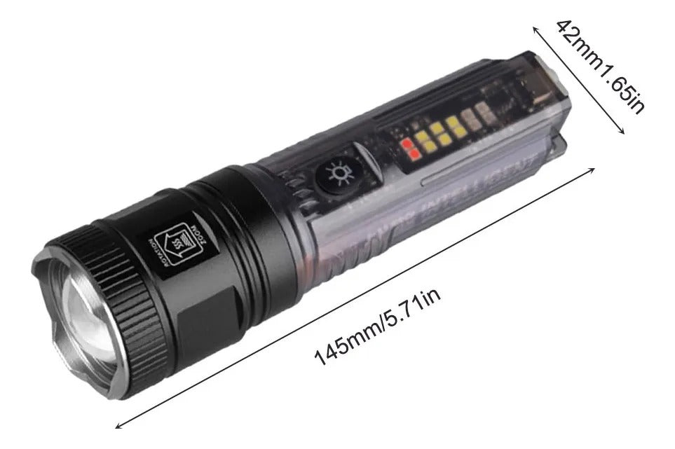 Este modelo es recargable y cuenta con una duración máxima de 6 horas, lo que garantiza que siempre tendrás luz cuando la necesites. Además, su resistencia al polvo y su capacidad a prueba de agua la convierten en una opción confiable para cualquier entorno. La función de zoom permite ajustar el enfoque de la luz según tus necesidades, brindando una experiencia de uso personalizada.