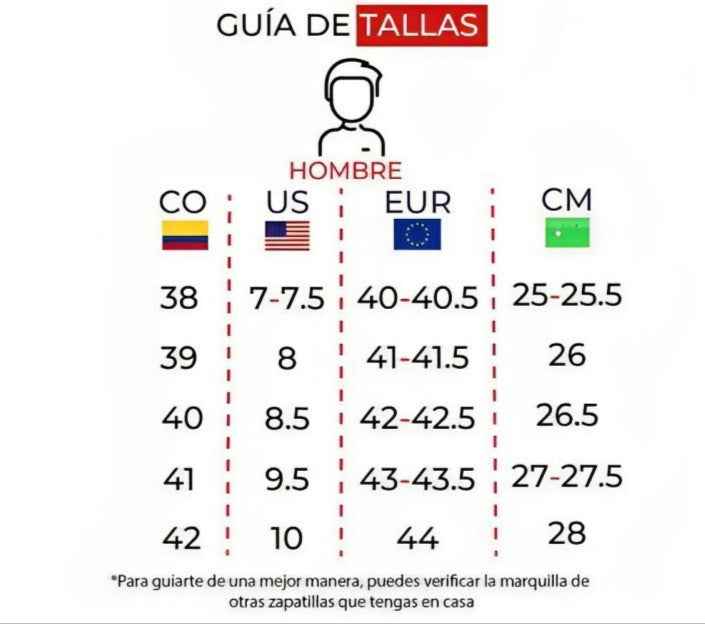 Colocando el pie apoyado en la pared y guiarte por la tabla de tallas y medidas o por otros tenis que uses con la medida indicada en las zapatillas.