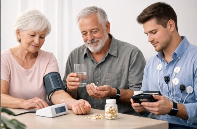 Combo medición salud " >Glucometro + Tensiometro + Termometro"