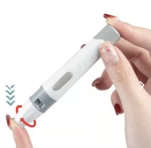 - 1 Lápiz Dispositivo Pinchador: Herramienta para realizar la punción en el dedo y obtener una muestra de sangre.