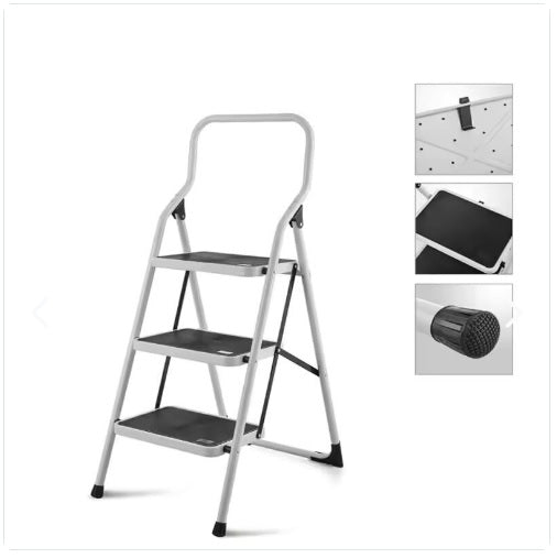 Esta escalera es fácil de transportar y de llevar, plegable, hecha en metal de alta resistencia, ideal para la cocina, zona de lavado y demás espacios donde tengas que acceder a sectores altos.