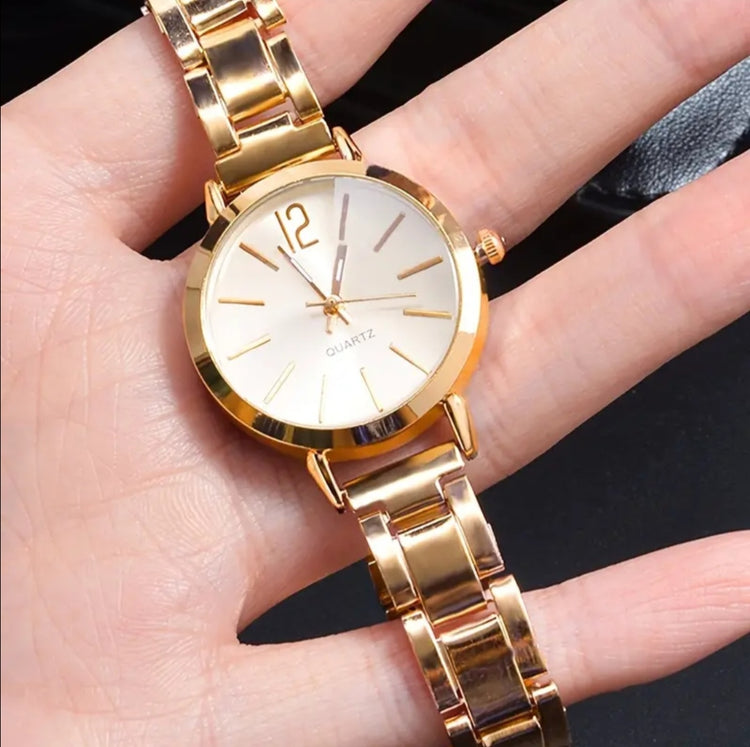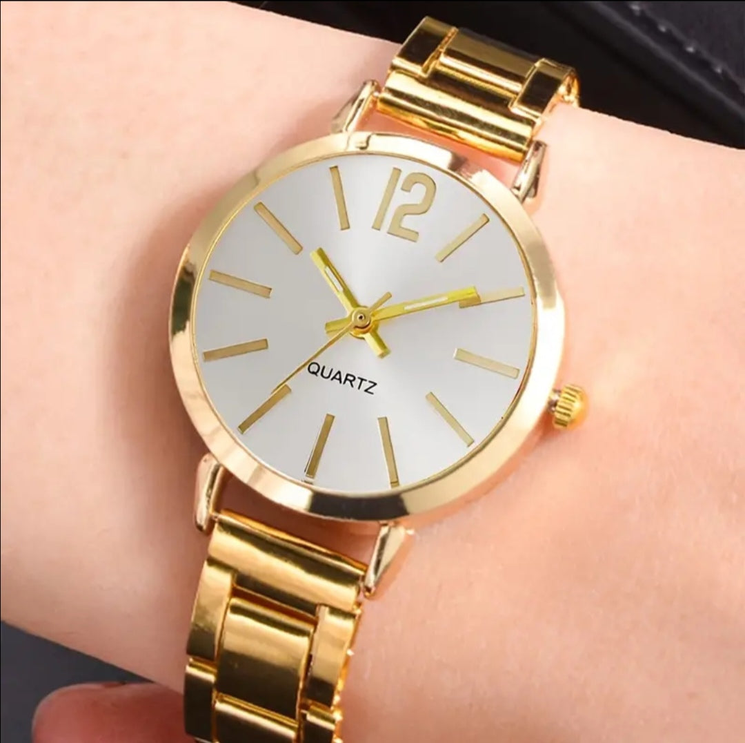 Combo 2pz reloj + pulsera dorada de mujer