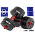 • Barras de pesas sólidas con una unión para convertir las 2 mancuernas en una barra larga, permitiendo trabajar diferentes grupos musculares.
