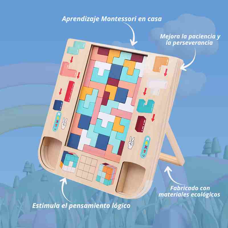 El Rompecabezas de Madera Tipo Tetris Montessori es mucho más que un juguete: es una herramienta educativa diseñada para desarrollar la lógica, la motricidad fina y la imaginación de los niños mientras se divierten. Ideal para mantenerlos alejados de las pantallas y fomentar su aprendizaje activo y natural.